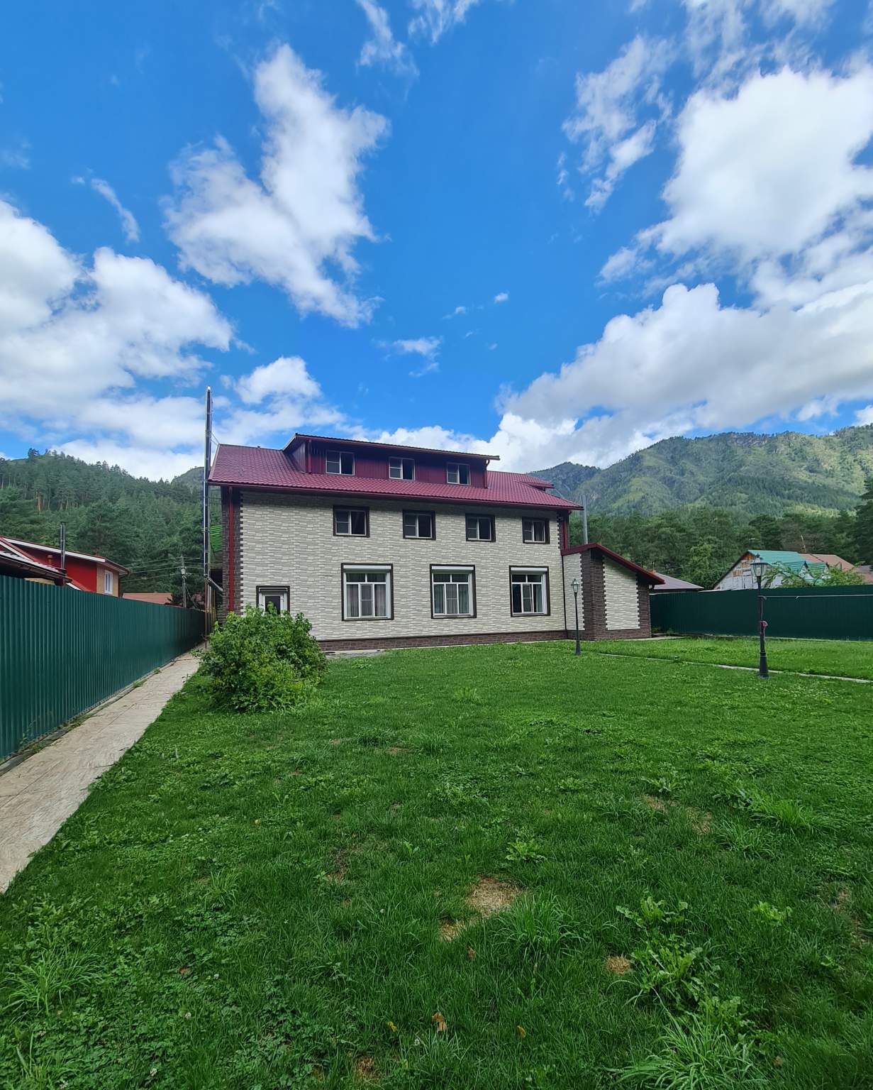 Продаётся трёхэтажный благоустроенный коттедж 411м2 на ул. Калинина 63 в живописном селе Чемал Горного Алтая на берегу реки Катунь!Земельный участок 14 соток в собственности! Уникальная возможность для инвесторов и любителей отдыха на природе! Предлагаем вашему вниманию исключительный коттедж, расположенный на берегу реки Катунь в Чемальском районе, всего в 20 минутах ходьбы и 5 минутах езды от усадьбы Роял Комфорт. Это идеальное место для комфортного проживания и отдыха, как для семей, так и для туристов, ищущих гармонию с природой. Основные характеристики: Трёхэтажный коттедж с благоустроенными номерами Доступные номера: однокомнатные и двухкомнатные, все с современными удобствами В каждом номере: собственный санузел, Wi-Fi, телевизор и необходимая мебель На территории: русская баня и сауна в коттедже для отдыха Преимущества коттеджа: Для гостей коттеджа бесплатное посещение бассейна на усадьбе Роял Комфорт Уникальное окружение: на берегу реки, рядом с лесом и горами — идеальное место для активного отдыха и расслабления Бесплатная парковка на территории Wi-Fi доступен как на территории, так и в номерах Общее количество корпусов для проживания: 1 Максимальное количество этажей в здании: 3 Не упустите возможность приобрести этот великолепный коттедж, который сочетает в себе комфорт и близость к природе! Это идеальное место для создания успешного бизнеса в сфере туризма или для комфортного проживания! Звоните сейчас, чтобы узнать больше и организовать просмотр! Не упустите шанс стать владельцем этого потрясающего места в сердце Горного Алтая!